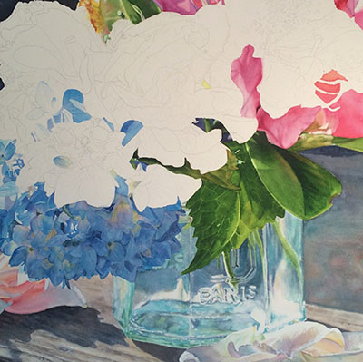 Painting water and glass have a lot in common: transparency and reflectiveness – plus they can both sparkle with light.  Actually painting this is more straightforward than you might imagine.  To start, I will tour you through my paintings in this luminous, watery world.